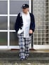 3月上旬 昼 12℃(15/2) 春を意識したルーズなプレッピー 見たままスクールテイスト。 アウターは紺ブレではなくカーディガン。 学生との違いは素性が確かな天然素材を使っていること。 素材に高級感があるとコスプレに見えにくくなる。 全体的に大きめのサイズ感にしてパンツの丈もあえてクッション付きで崩しているのは学生と同じw