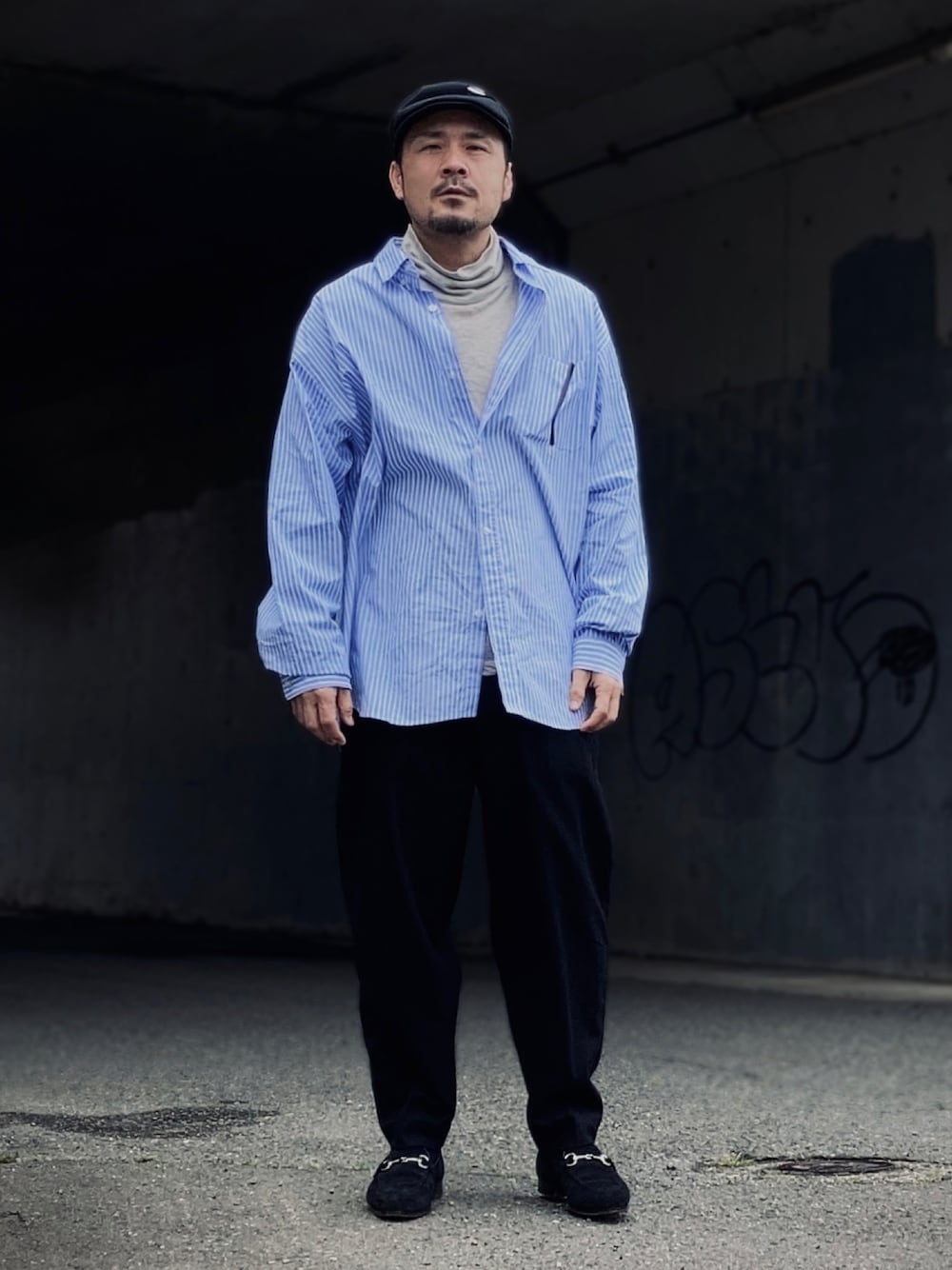 4月中旬 昼 19℃(22/12) シャツスタイル ちょっと肌寒かったのでロンTの上にオーバーサイズのシャツを着用。 明るい色と大き目のサイズ感がカジュアル度合いを増している。