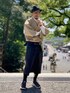 4月下旬 昼 20℃(23/10) 浴衣 TROVEの浴衣はシルエットや素材が洋服に近いので普段着として使いやすい。 この日は妻も着物だったので二人で地元神社へお参りに出掛けた。 🔸追記 この格好についてインスタで「斬新」とコメント頂いた。 私にとって和洋折衷は普通だったので少々驚いたが良い気づきにもなった。 よくよく考えてみればこれは奇抜だ。 …感覚が麻痺している。 量販店のワイドパンツが普通のストレートに感じるくらいだから服に対する感度は世間からズレている。 それを自覚しているのでTPPOに応じて修正しているつもりだが、この格好で神社へお参りに行くのはマズかっただろうかと考え直してみた。 …赤の他人の服装など誰も気にしていないものだ、ということで全く問題ないという結論に着地したので、やはりズレているのだろう。