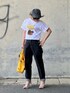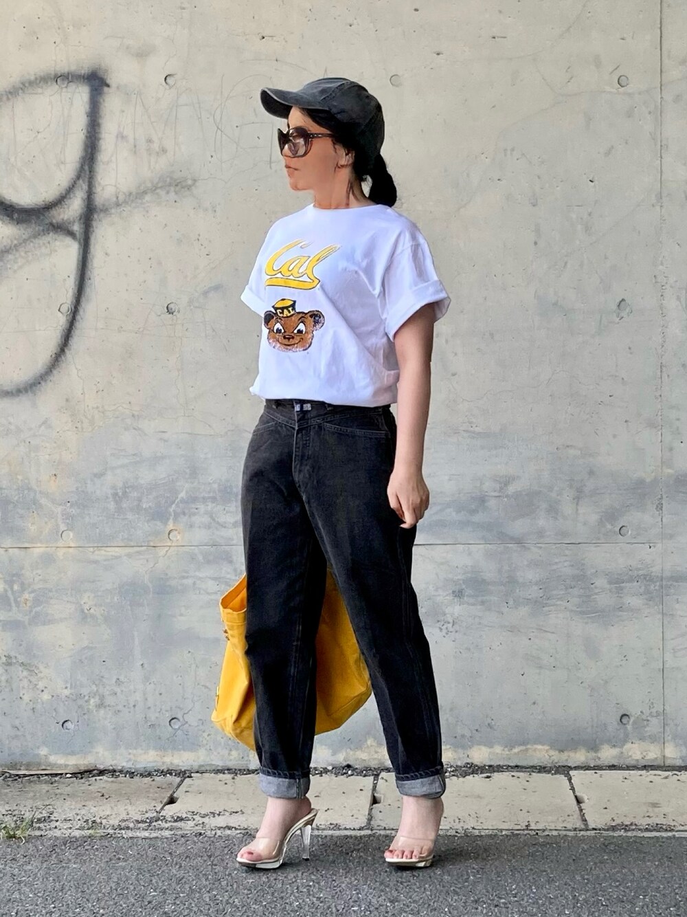 80’sスタイル Tシャツとジーンズ販売中。 ジーンズは日本製の古着。 ◾️着こなし カジュアルな古着コーデにフェミニンなヒールサンダルを合わせてレディライクに。 ジャストサイズかややゆったりのサイズ感がカジュアルコーデを品良く美しく見せるポイント。 売り物なので裾上げしていませんが、テーパードデザインで裾幅16cmなのでロールアップしてくるぶし丈くらいに股下長さを調整していただくとより美しいと思います。 ご質問ございましたらWEARかインスタのメッセージからお気軽にお問い合わせください。。 【モデル】 153cm 骨格ストレート 【ジーンズ情報】 ブランド: FIFTY’S CLOTHING ヴィンテージ古着 日本製 綿100%(ストレッチなし) size: 29 [参考寸法] ウエスト:68cm 股上:28.5cm 股下:76.5cm ヒップ:100cm ワタリ:28cm 裾幅:16cm