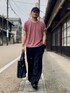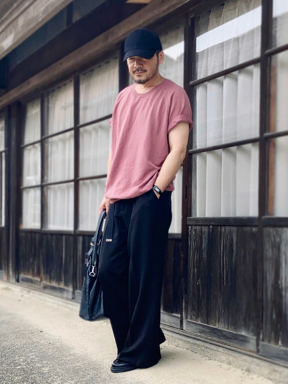 6月下旬 午後 28℃(29/21) 珍しく古着を一着も使っていない。 新作ではなく着回しだがシンプルとオシャレの両立を狙っている。 ニットTシャツはuniqloの2XLサイズ。 ジャストサイズはMかLなので2-3サイズアップしてゆったり着用。 スラックスは全く同じ型のMとLをサイズ違いで持っている。 今回はよりゆったり穿きたかったのでベルト必須のLをチョイス。 ワイドデザインなので生地が肌に触れる面積が少なく脚の形を拾いにくいため美脚効果抜群。 フリマ販売中。 ウエストが大きいためベルトで締めてウエスト位置を調整できるし、サラサラ素材のゆったりサイズなので夏場は快適に過ごせると思う。