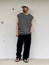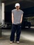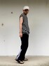 7月上旬 朝 25℃(30/24) リメイクアイテム 【キャップ】 GLOBAL EORK ツバの先端からコットン生地を剥がしてフリンジっぽく加工。 いずれ塗装したい。 【シャツ】 WYM LIDNM バスクシャツの袖を外してノースリーブにリメイク。 ワイドシルエットでドロップショルダーなので肩口の縫製を解くだけでいい感じに肩が隠れる。 【パンツ】 古着adidas ワイドシルエットで今っぽい。 経年変化で適度に毛玉があるので今日のようなちょっと小汚い格好には上手く嵌ってくれる。 (フリマ販売中)
