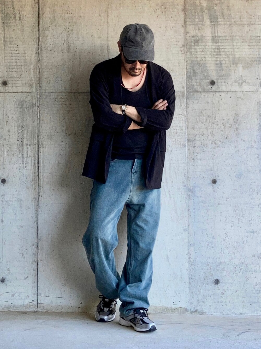 8月上旬 夕方 32℃(34/28) リアルダッドスニーカー 靴から組んだコーディネート。 ダサイの代名詞的な不名誉なレッテルを貼られているダンロップのスニーカーをAmazonで新規購入。 購入理由は単純にカッコよくて安いから。 近未来的な切返しパターンと配色に惹かれた。 ワイズ4Eの割にトゥ周辺はスリムに見えるからシルエットもなかなかスタイリッシュ。 しかもこれが3000円代。 ただミクロ的に見るとチープであることは事実。例えばNBやSalomonなどの高級スニーカーとは素材感や構造は全く異なるのでそこを承知の上で取り入れなければならない。 せっかくなので今回のスタイリングでは他にも負のレッテルを貼られているアイテムを意識的に使ってみた。 ジャケット:しまむらAVAIL ジーンズ:SHEIN スニーカー:DUNLOP 低価格品でも安いなりに配色と素材のバランスを整えれば普段着としてはじゅうぶん。 サイズ感だったりジャケットの抜襟やジーンズをどの位置で穿くかなど着こなしの細かい部分を慎重に調整すれば割とオシャレに見えると思う。 もちろんこれらはウケ狙いでやっているわけではなく私の日常のワードローブとしてリアル使いしているものだ。 着方もじゅうぶんわかっているので新規のダッドスニーカーもすんなり受け入れることができる。