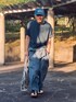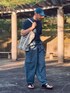 8 月中旬 夕方 32℃(35/25) ジャンプスーツ いわゆるツナギ 。 色と柄が特徴的。 長袖は暑いので上半分を脱いで腰巻き。 ただし上半身がシンプルになってしまうのでバッグを肩掛けして全体のバランスを取る。 毎年8月の盆休みになると急激に秋服を意識するようになる。 季節の変わり目には雑誌gap pressを見返してトレンドイメージをインプットする。 これがここ数年のルーティーン。