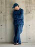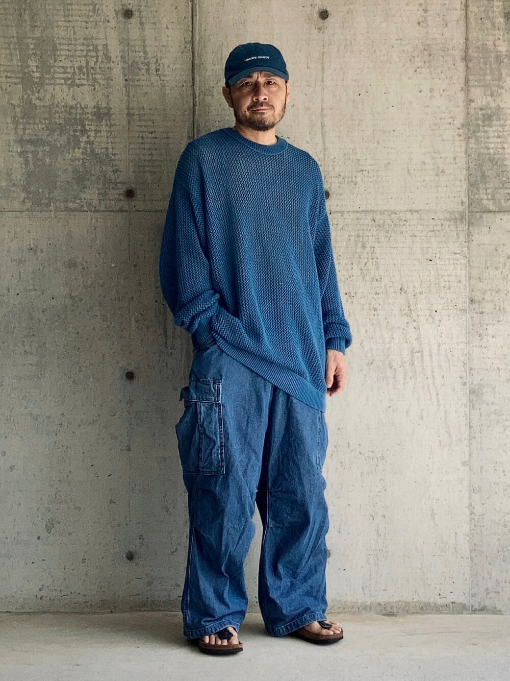 9月初旬 午前 31℃(33/26) 秋スタイル 青の色相で統一したワントーンコーデ。 このコーデではキャップ以外のアクセサリーや小物を一切使っていない。 素材に凹凸があるためのっぺりした印象はそれほどないと思う。