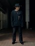 9月下旬 夜 24℃(28/21) ネイティブスタイル facciesの上下にウエスタンブーツ。 テンガロンハットで総仕上げ。 夜はブラックが似合う。