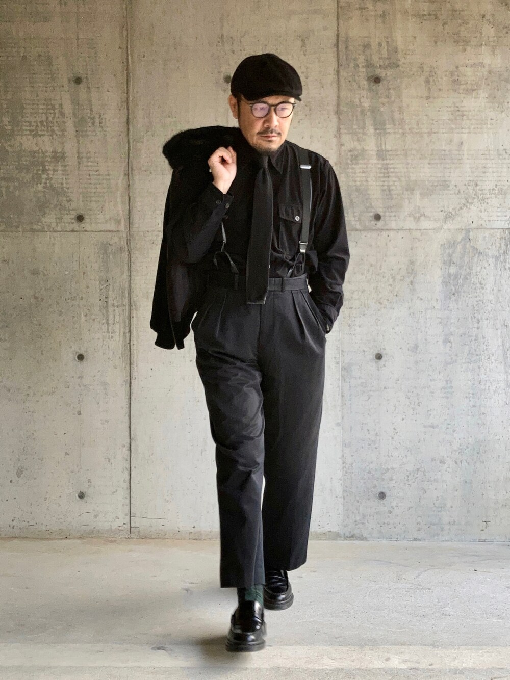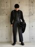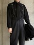 11月上旬 朝 17℃(24/15) ドレスワーク ワークアイテムを色とデザインで格上げ。 起毛素材や本革はこれからの季節にぴったり。 ニットタイとサスペンダーが効いている。