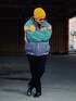 12月上旬 朝 9℃(18/7) ナイロンパーカ ポリエステルの中綿入りであたたかい。 インナーはシャツ一枚で十分。 古着なので年代は定かではないが今でもじゅうぶんシルエットが通用する。 女性が着用すればハイブランドのようなビッグシルエットで着用可能。