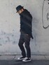 1月中旬 午後 7℃(8/-2) クールボーイ トレンドスタイルではなくてもオシャレはできる。 サルエルスキニーを使ったIラインシルエット。 普通のスキニーではこのシルエットは作れない。 サルエルは腰位置ではなく股下位置をローポジションに持って来れるので胴長短足という個性的な見た目を手に入れることができる。 これがオシャレかどうか別として流行りとは無縁のコーディネーション。 好きだから着ている。 中古服 デニムジャケット: COS ??円 デニムサルエルパンツ: jieda ??円 ウール中折れハット: uniqlo 500円 サングラス: adidas 1000円