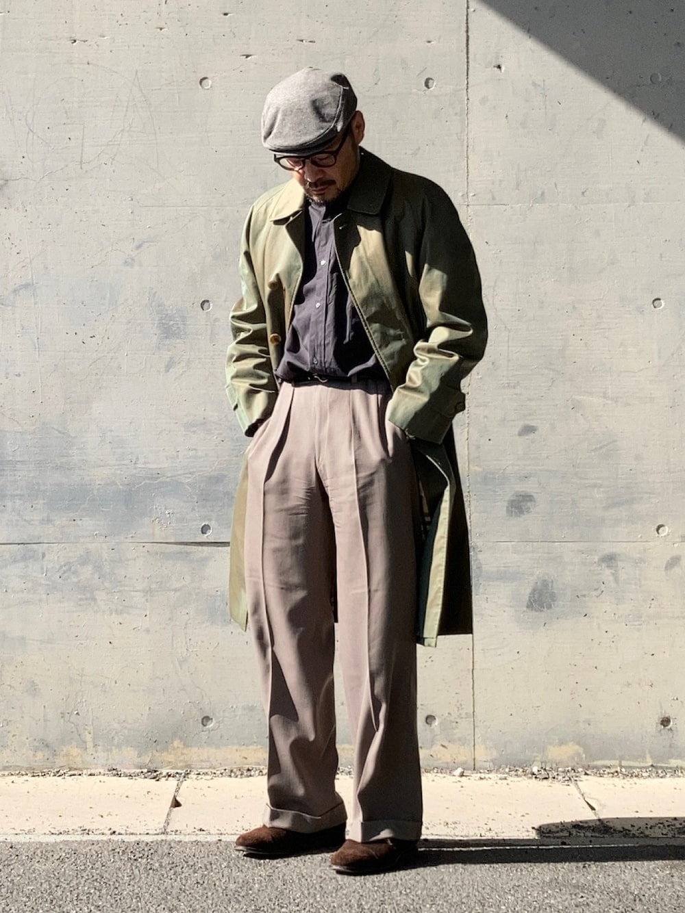 2月初旬 午前 9℃(11/3) クワイエットラグジュアリー 素材の良さが際立つ安定のコーディネーション。 春を意識したスモーキーなトーンで色合わせ。 コート: burberry 12000円 パンツ: ralphlauren ?? 円 キャップ: mila schon ??円 以上中古。 中古でもラグジュアリー。