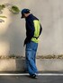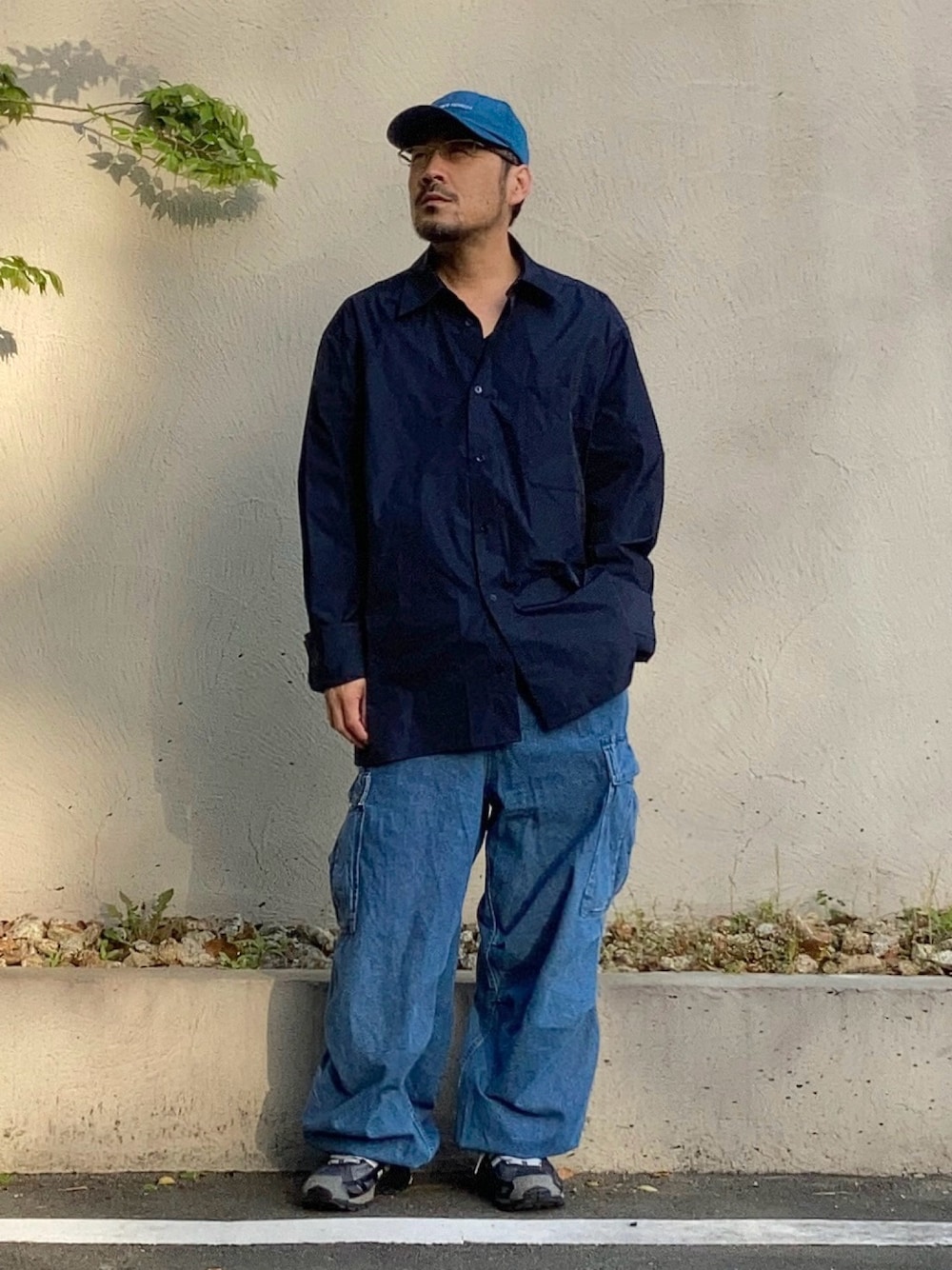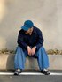 4月下旬 朝 ブランドミックス 色相を関連づけ。 ブルー系に統一し明度差をつけたトーンオントーン配色。 botterのシャツは中古服。