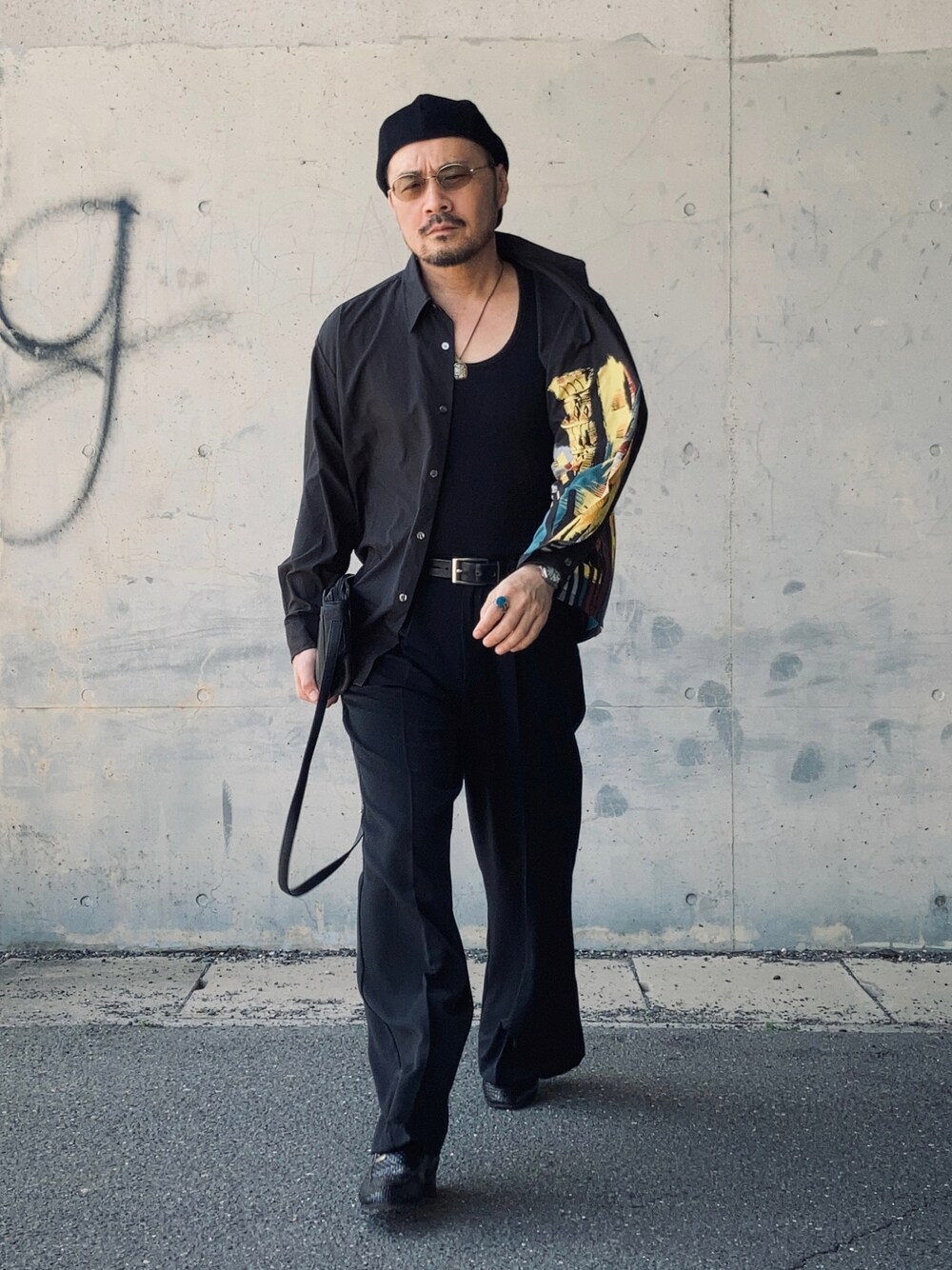 koppaのシャツ/ブラウス「【sold】プリントシャツ ブラック M相当」を使ったコーディネート