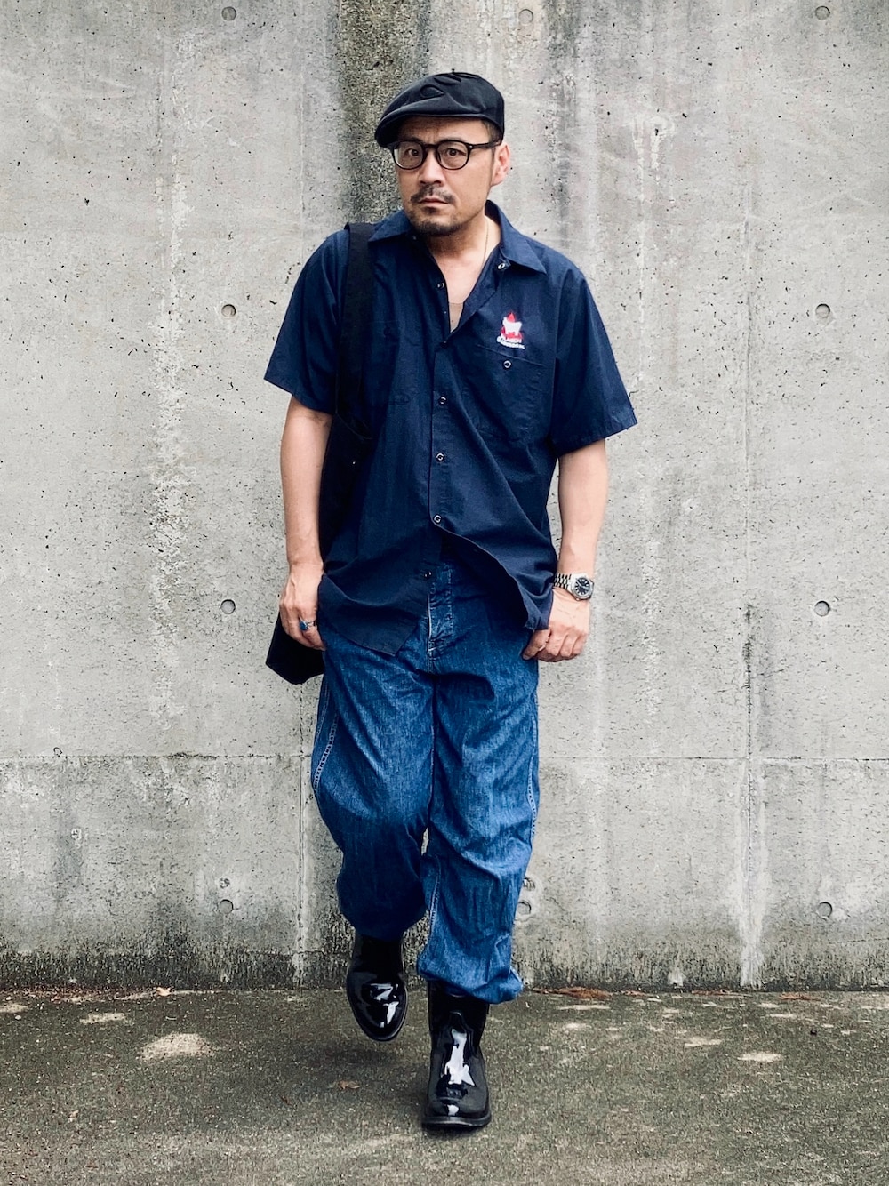 ブーツインのために買ったパンツなのでこれでいいと思っているが真夏にブーツは流石に暑苦しいかも… せめてブルーの色相でトーンオントーン。