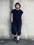 オーバーサイズのノースリーブとショーツでゆったりと肌見せ。 黒の暑苦しさを相殺。 上下とも中古。