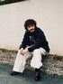 上下スウェットでスーパーカジュアルなのでレザージャケットとレザーブーツでバランス調整。 ジャンルもブランドもミックス。 好きなものをTPOに合わせて好きなように着ているだけ。