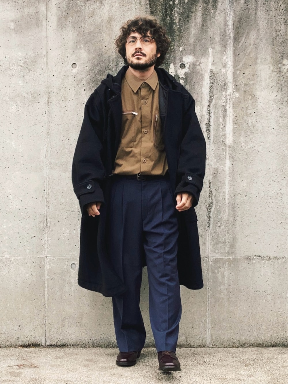ダッフルコートはカジュアル要素が強いのでダークトーンかつロング丈を選びたい。 合わせるアイテムは革靴やスラックスなどテイストの違うものを選んでミックススタイルに。