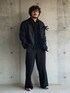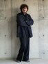 オールブラックにスニーカーを合わせて抜け感を。