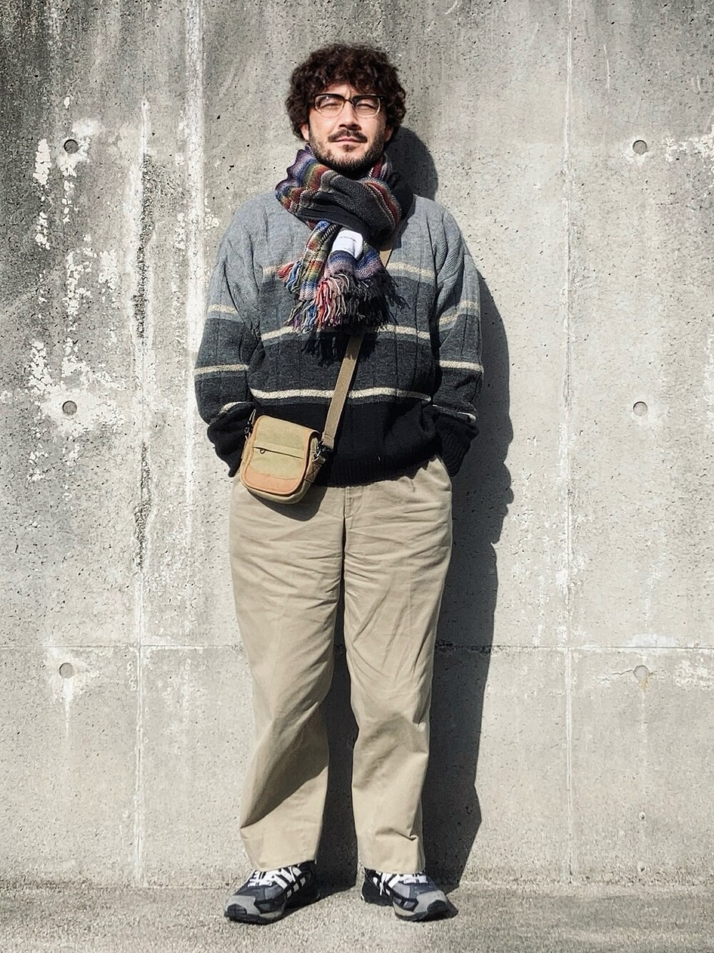 お父さん向けブランドはデザインを重要視しない。 とにかくゆったりしたサイズ感と確かな素材、そして丁寧な作りが優先されている。 古着を着用するとよくわかる。 着心地がいい。 サイズ感と配色を意識してコーディネートすれば上質な休日カジュアルスタイルが出来上がる。