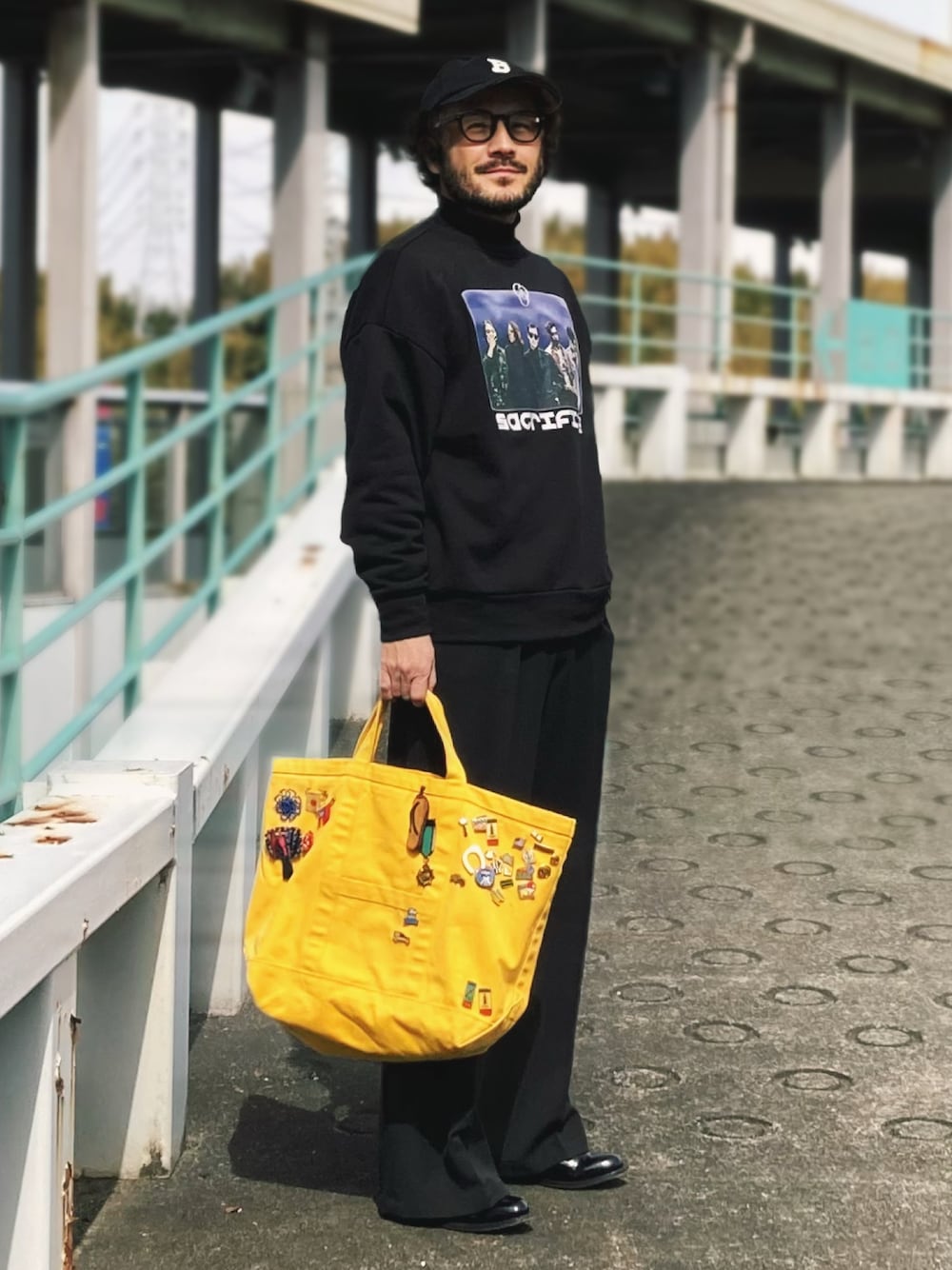 イージースタイル 油断するとオールブラックになるからせめてイエローのトートバッグを合わせよう…