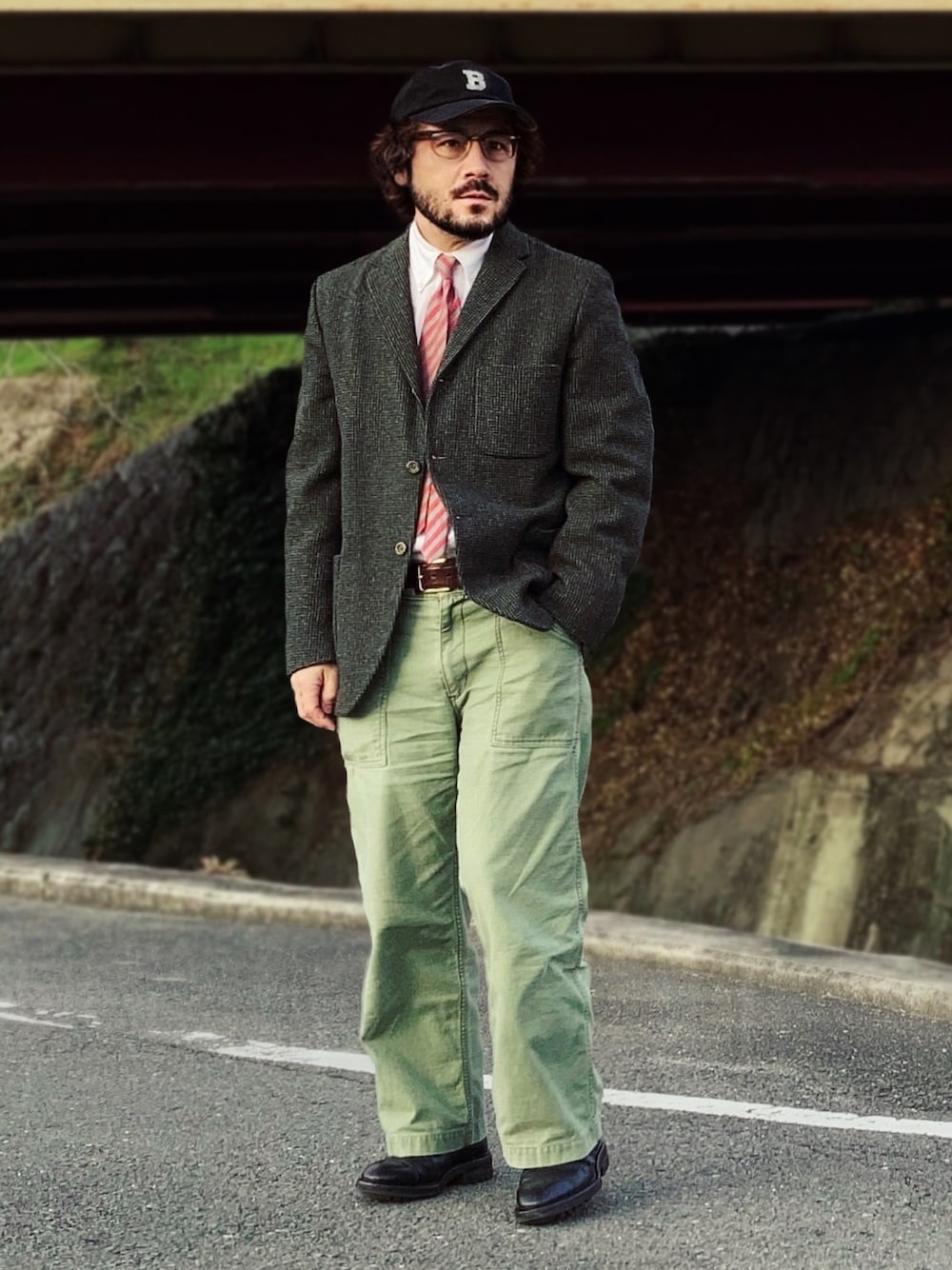 安定の定番スタイル ハリスツイードのジャケットは古着で購入してから25年経った今も変わらず着用している。