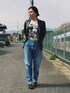 レザージャケットにブルージーンズ、 インナーに古着のミッキーtee… 素材感、配色、シルエットが整っているので幅広いTPOにマッチすると思う。