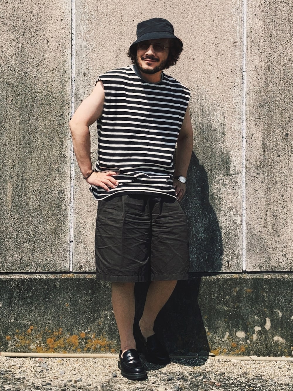袖を取り払ったリメイクボーダーシャツ ノースリーブの重ね着