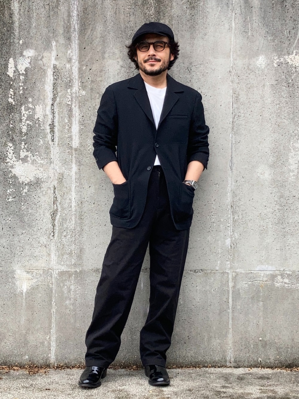 古着ジャケットにワークパンツ