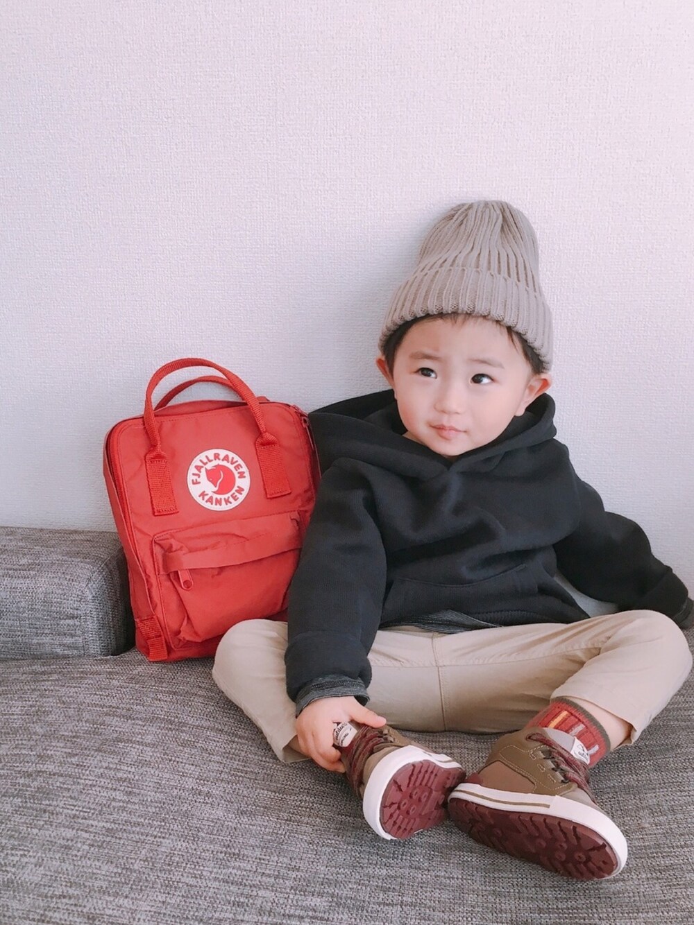 1歳の誕生日に買ってもらった KANKEN mini 最近はおもちゃを入れたり出したりが 楽しいみたいで 家の中をリュック持ってウロチョロしてます☺️