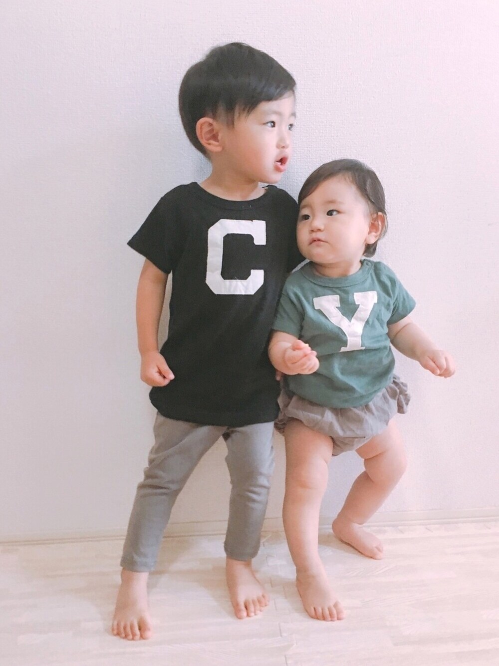 兄妹shot☺︎ DDのイロチTシャツ♡ ======= ▷2y10m height: 90㎝ weight: 11.6kg -------------- ▶︎1y0m height: 73㎝ weight: 9.1kg ======= ✦見ていただきありがとうございます☺︎✦