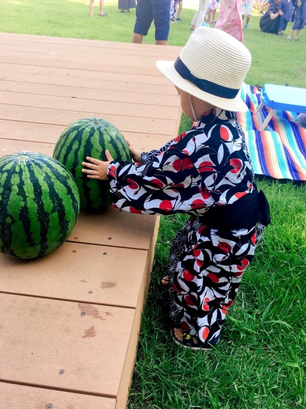 お祭りではじめての スイカ割りを体験🍉 目隠し拒否✋ハチマキ状態で しっかり前を見ながら 見事スイカを叩くことができました😂 ======= ▷3y0m height: 91㎝ weight: 12.8kg ======= ✦見ていただきありがとうございます☺︎✦