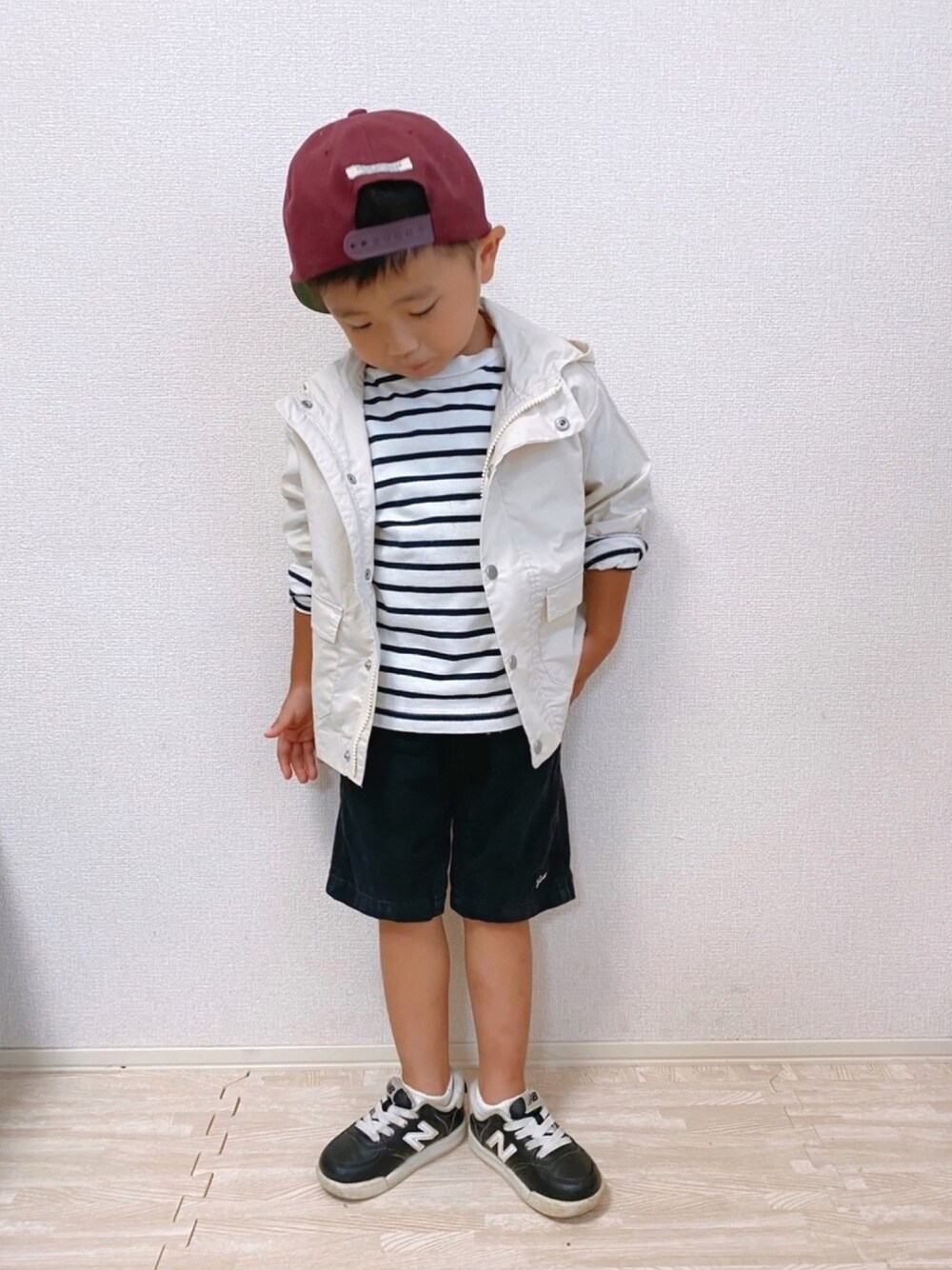 #ボーダートップス モノトーン にキャップで差し色*̣̩⋆̩ ======= ▷4y0m height: 99.0㎝ weight: 14.1kg ======= ✦見ていただきありがとうございます☺︎✦
