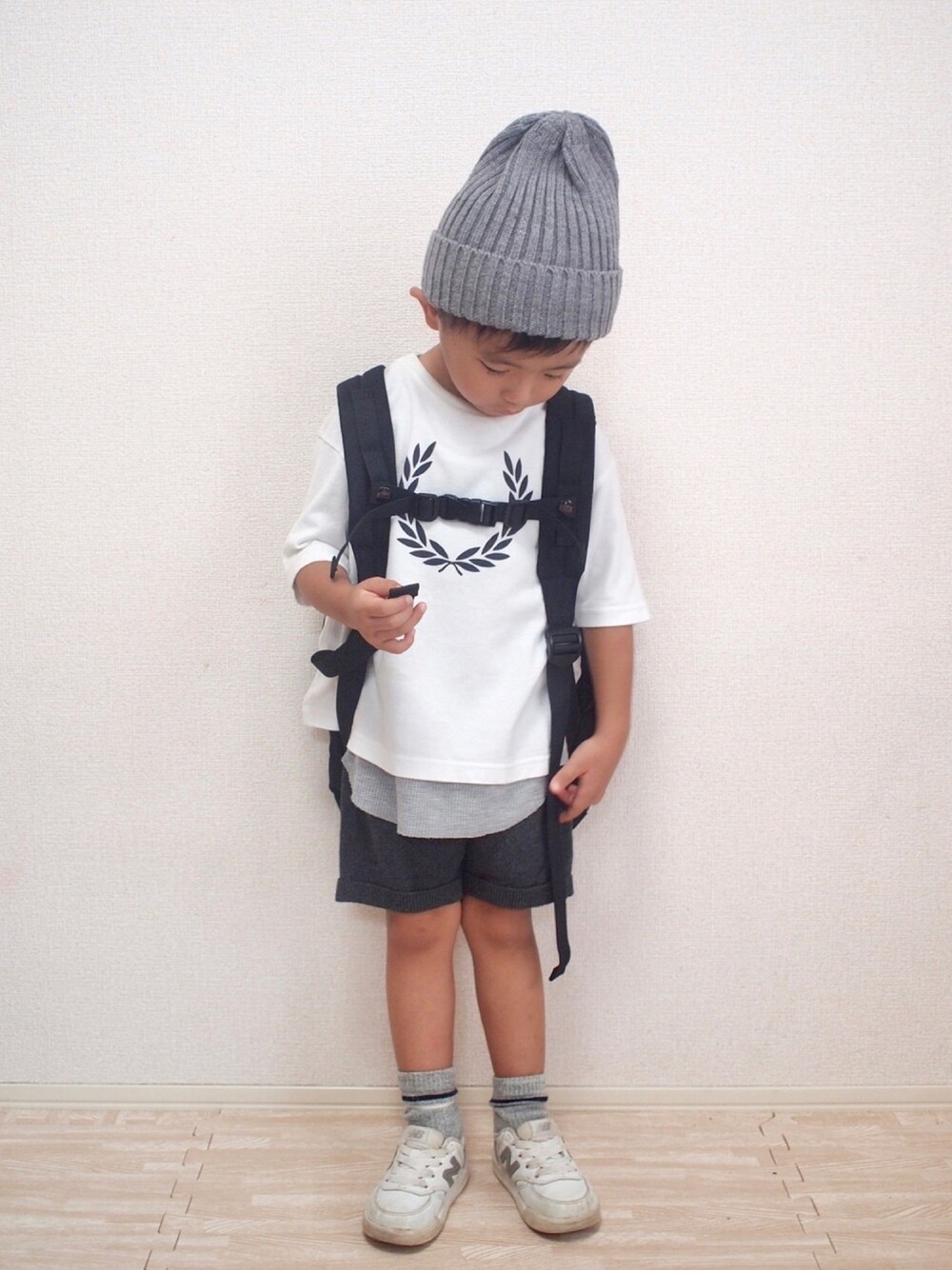 #白スニーカー お気に入りのNB もうジャストサイズで そろそろサイズアウトかな… 次はどんなスニーカーにしようかな♬ ZARAのショートパンツは わかりにくいけどニット素材で 今の時期にピッタリ🍂 ======= ▷4y1m height: - ㎝ weight: 14.4kg ======= ✦見ていただきありがとうございます☺︎✦