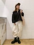 ZIPウラケの着回しコーデ。 トレンドのミリタリーパンツと合わせてメンズライクに! チャコールグレーのカラーなのでカッコよく見えすぎず、優しい印象で着ていただけます! パンツはウエストゴムなのでゆったり履いていただけます! サイドにポケットがついているのでデザイン性がありお洒落見えボトムスです!