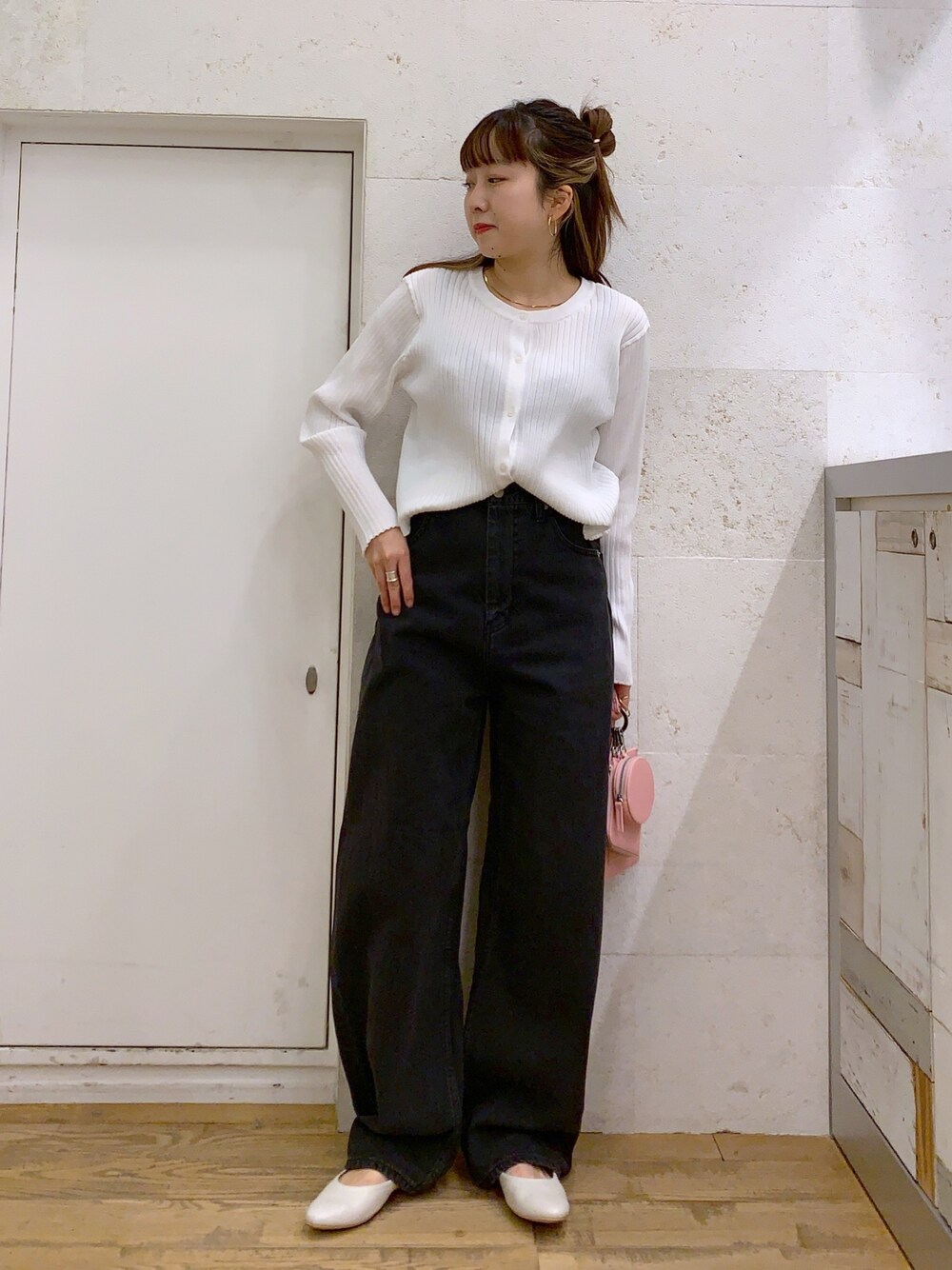 ◯カーディガン ショートカーディガン! 短めの丈感ですが、腰回りは隠す事が可能! 袖が長めで、トレンド感もあり、シンプルすぎずお洒落に着ていただけます! ◯デニム カーブ感が可愛いデニム! ゆるっと感がとっても可愛い、、、 Mサイズで丈は長めですが、少し折ったりすると履いて頂けます!