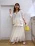 ◯カーディガン UVカット機能が付いているカーディガン! 生地が薄いので、通気性よく、夏の羽織としても着ていただけます! ◯スカート 大人気のチュールスカート。 歩くとふわっと広がるチュール生地可愛い! 一枚合わせるだけでオシャレ見え抜群です!