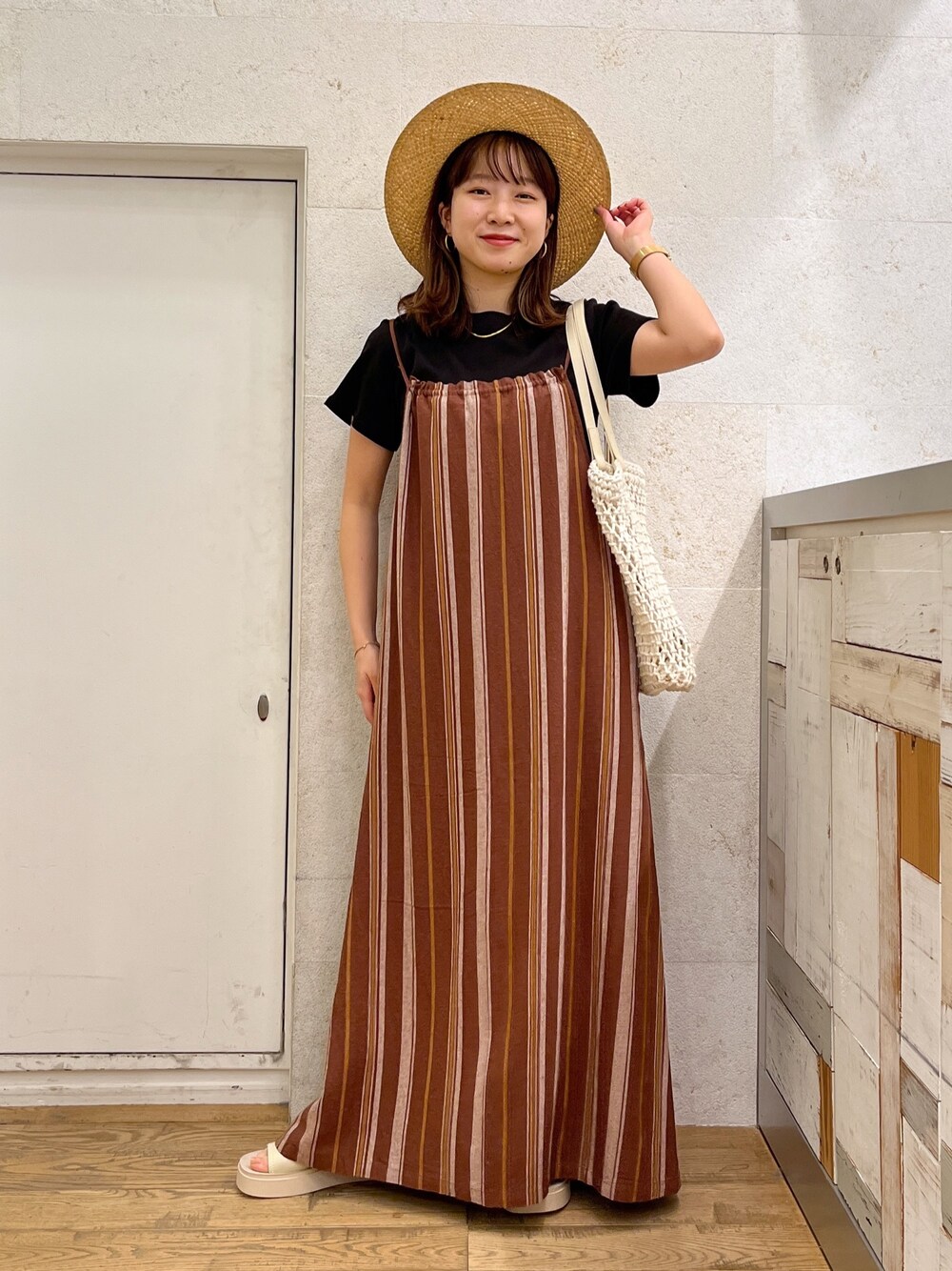 夏のキャミワンピース! 麻素材なので夏でも涼しく着れます! 後ろのヒモで丈感も調節できるので、低身長の方も安心して履いていただけます!