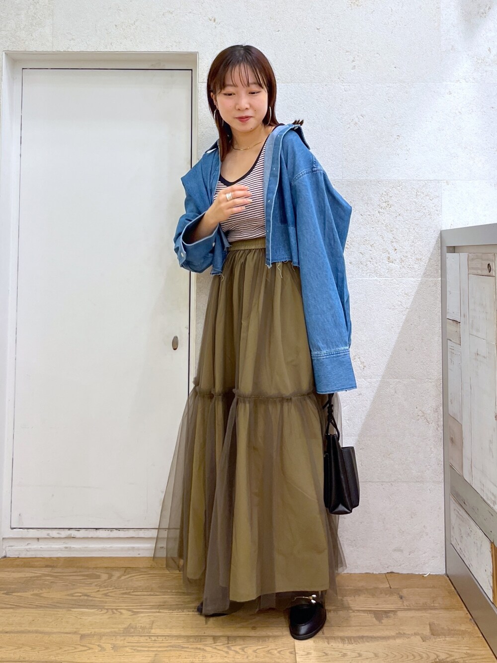 ⚪︎シャツ ショート丈のデニムシャツ! 丈感が短いので、ボトムスと合わせた時にバランスよく着ていただけます! お袖の部分が調節可能です! ⚪︎スカート 大人気のリバーシブルスカート! なんと裏返してきていただくことも可能!
