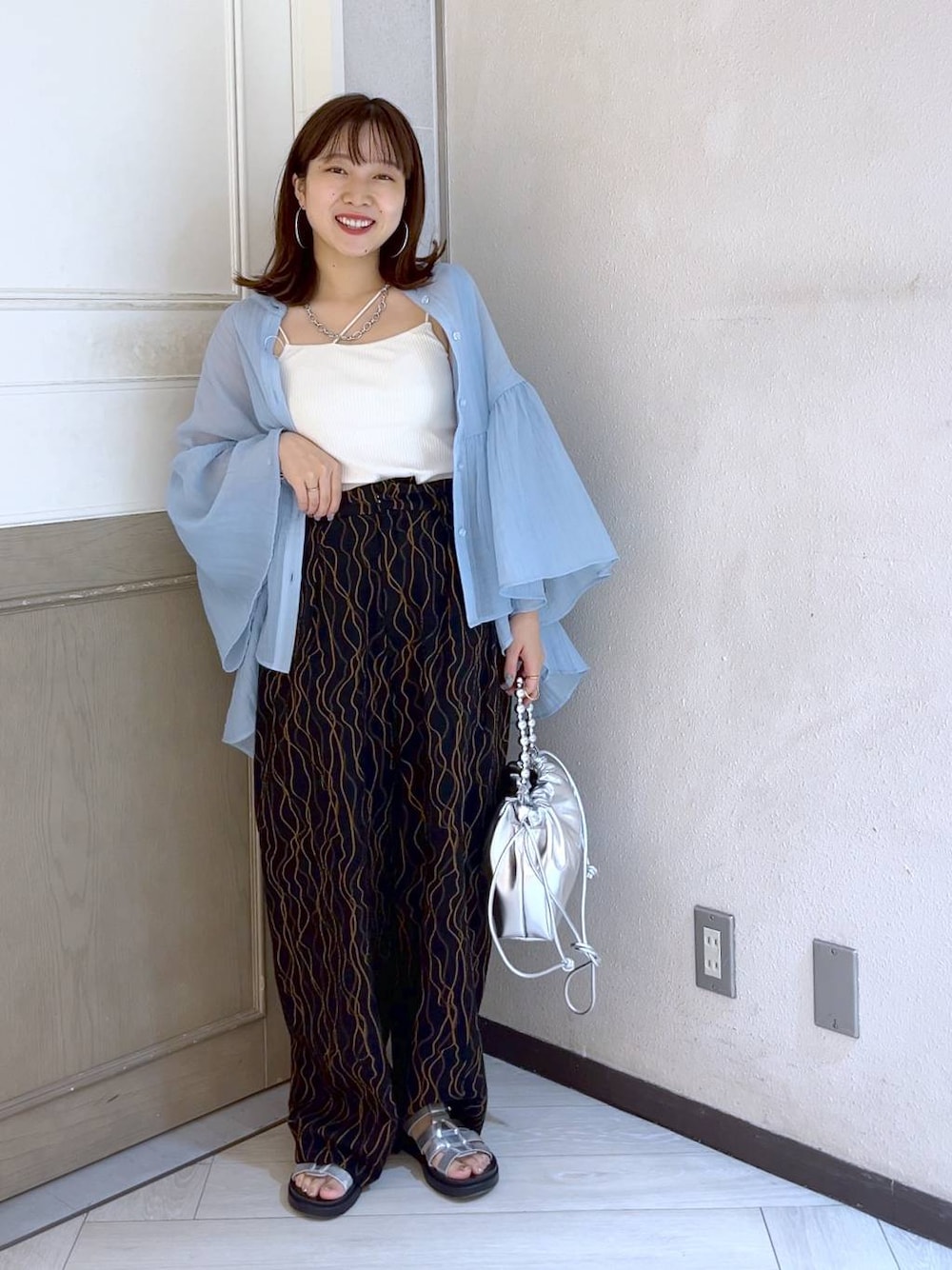 ⭐各アイテムのおすすめポイント  ̄ ̄ ̄ ̄ ̄ ̄ ̄ ̄ ̄ ̄ ̄ ̄ ̄ ̄ ̄ ̄ ̄ 【トップス】 バンドフリルで可愛らしく、さらに涼しく着れるシャツアイテム。 素材も柔らかく通気性抜群! 羽織でも前とじでも2wayで着ていただけます! 【ボトムス】 ウエストにタックが入っており、腰回りもスッキリ。 また、後ろゴムなので楽に履いていただけます! フリーサイズですが、150cmの私でも丈感も問題なく履けました🙆♀️