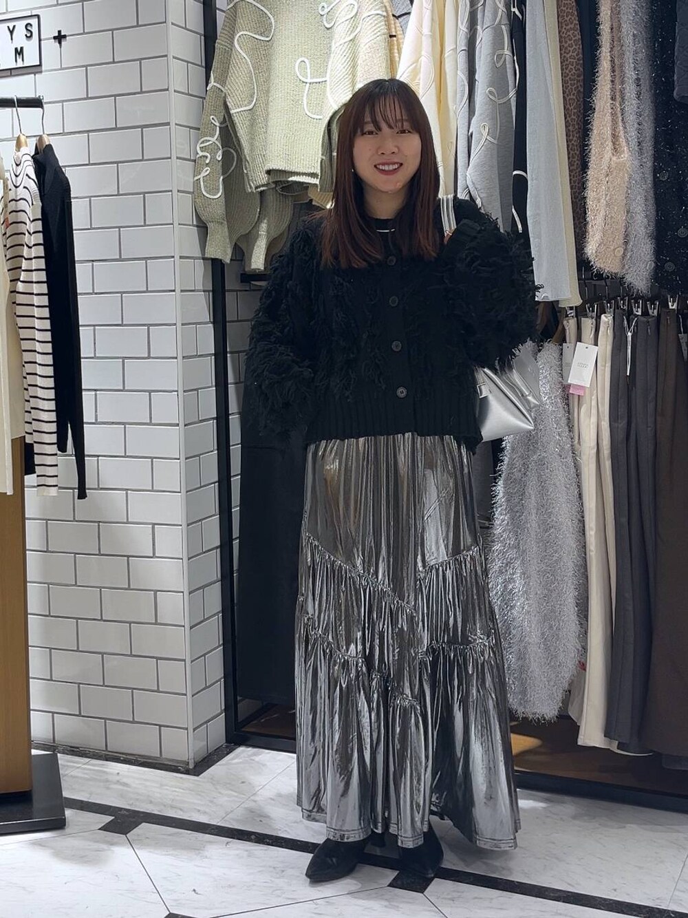 ⭐各アイテムのおすすめポイント  ̄ ̄ ̄ ̄ ̄ ̄ ̄ ̄ ̄ ̄ ̄ ̄ ̄ ̄ ̄ ̄ ̄ 【トップス】 前後2wayアイテム! 丈感がミドル丈なので、腰回りは隠しつつ、バランスが取りやすいアイテムです! 【ボトムス】 ギラっと光るグリッタースカート。 ウエストも総ゴムなので楽ちんに履いて頂けます!