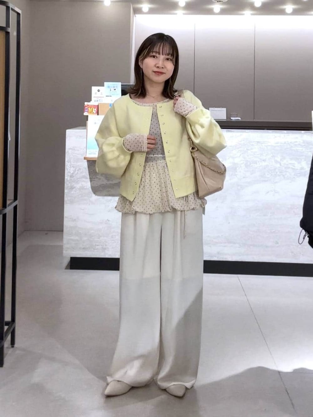 ⭐各アイテムのおすすめポイント  ̄ ̄ ̄ ̄ ̄ ̄ ̄ ̄ ̄ ̄ ̄ ̄ ̄ ̄ ̄ ̄ ̄ 【トップス】 リバーシブルアイテム! 春らしいイエローカラーが可愛い✨ トレンドのブラウスと合わせて今年っぽく大人可愛いコーデに💡 【ボトムス】 お洒落見え間違いなしのサテンパンツ! ウエストはそうゴムなので楽ちん使用。 丈は長めですが、ウエストで折ると引きずらずに 履いていただけます!! (写真は折ってない状態です。)