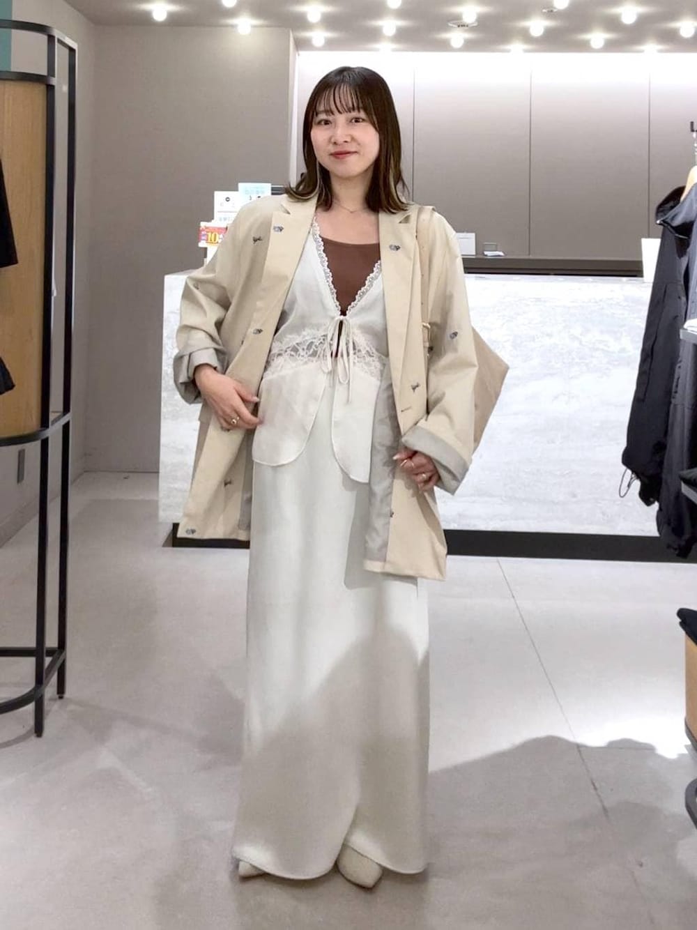 春のジャケットコーデ。 レースのベストを入れてトレンド感をON!
