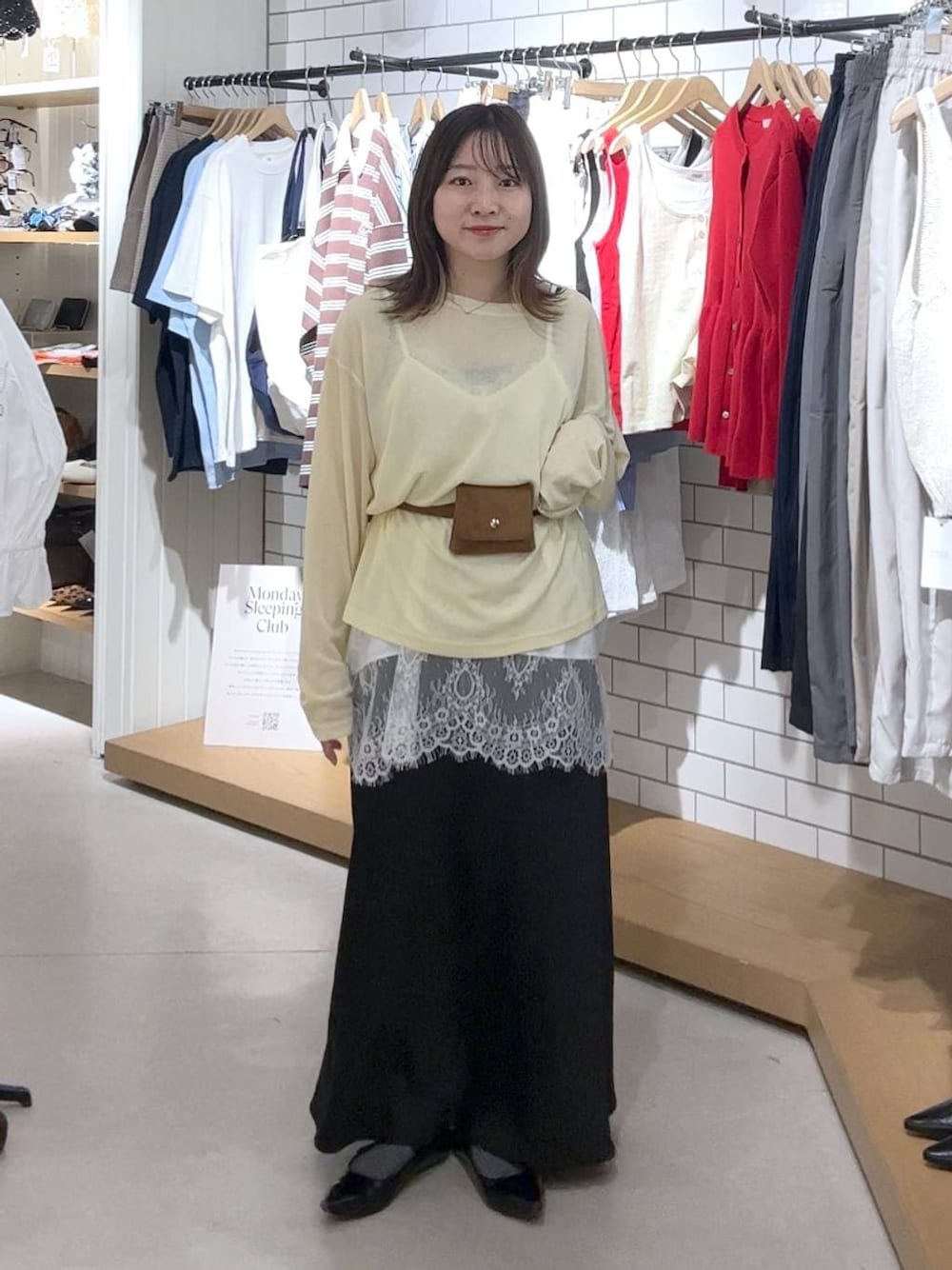 レースインナーを使ったトレンドコーデ🌟 春らしい黄色カラーと白レースが相性抜群!