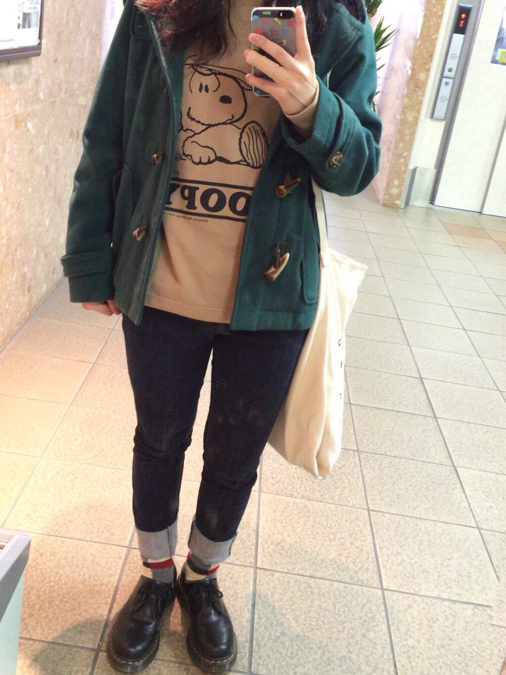 コート:sanjuan シャツ:無印良品 スウェット:UNIQLO パンツ:GU 靴下:靴下屋 シューズ:ドクターマーチン 男の子みたいな感じを意識したり 。