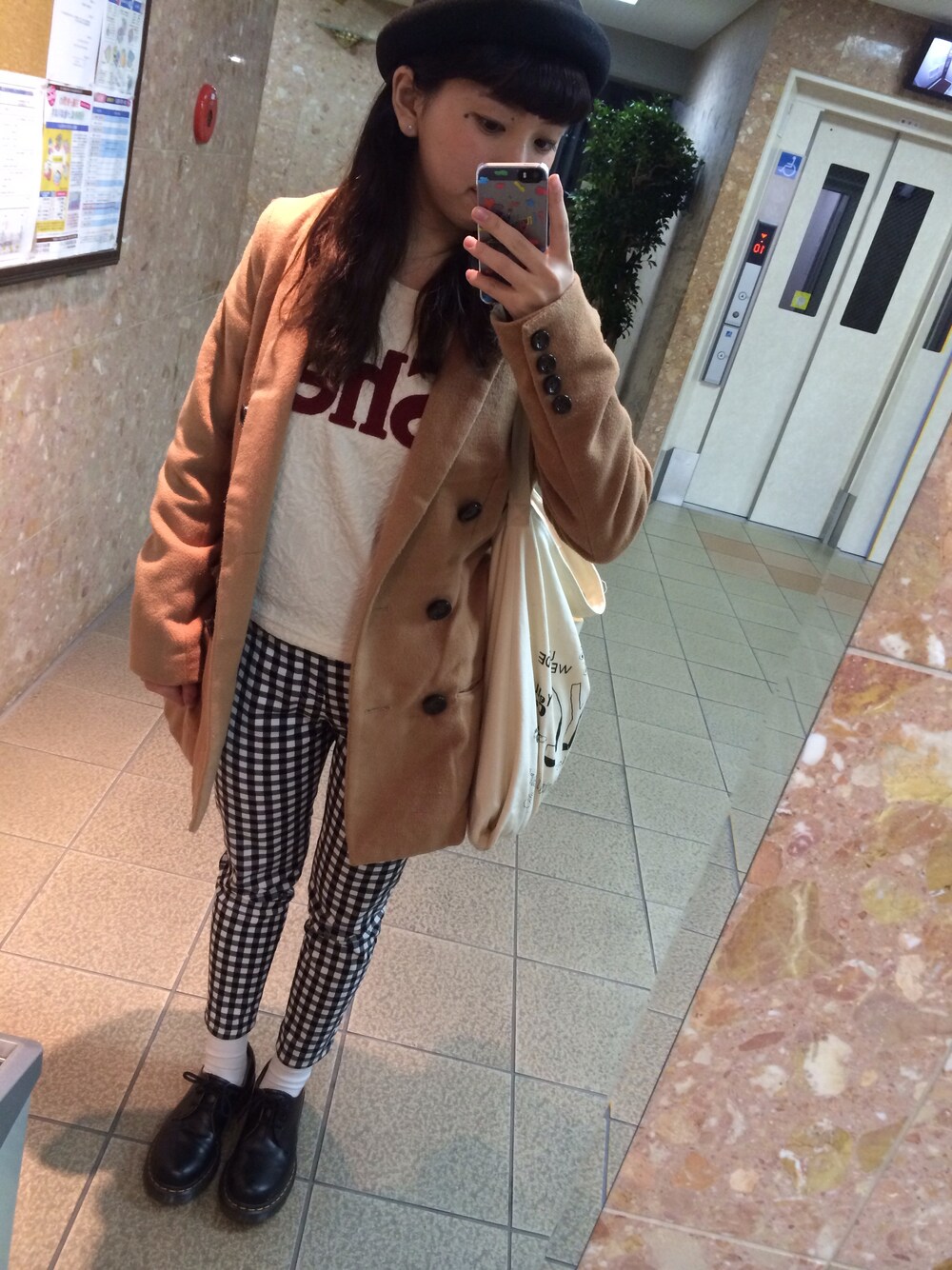 コート:しまむら トップス:kastane ボトムス:GU 靴下:靴下屋 シューズ:ドクターマーチン 帽子:H&M 02.26(wed) ハット帽子に初挑戦してみました ♡