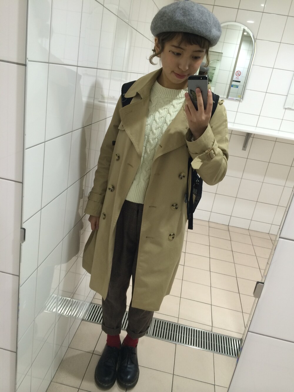 トップス:韓国 ボトムス:w closet 靴下:靴下屋 靴:ドクターマーチン 帽子:不明 おじコーデです 。赤の靴下とベレー帽は最高 。