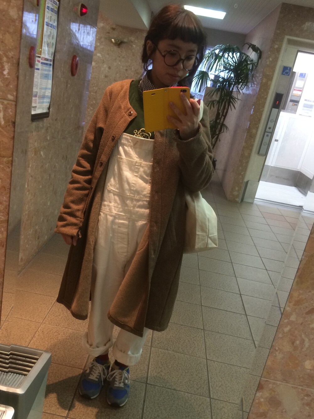 コート:sanjuan 下に着たシャツ:ローリーズファーム スウェット:スピンズ オーバーオール:w closet スニーカー:ニューバランス 03.22(Sat) 友達のアナの雪の女王見ました ♡ アナのたくましさとエルザの美しさ 分けてほしいです 。。