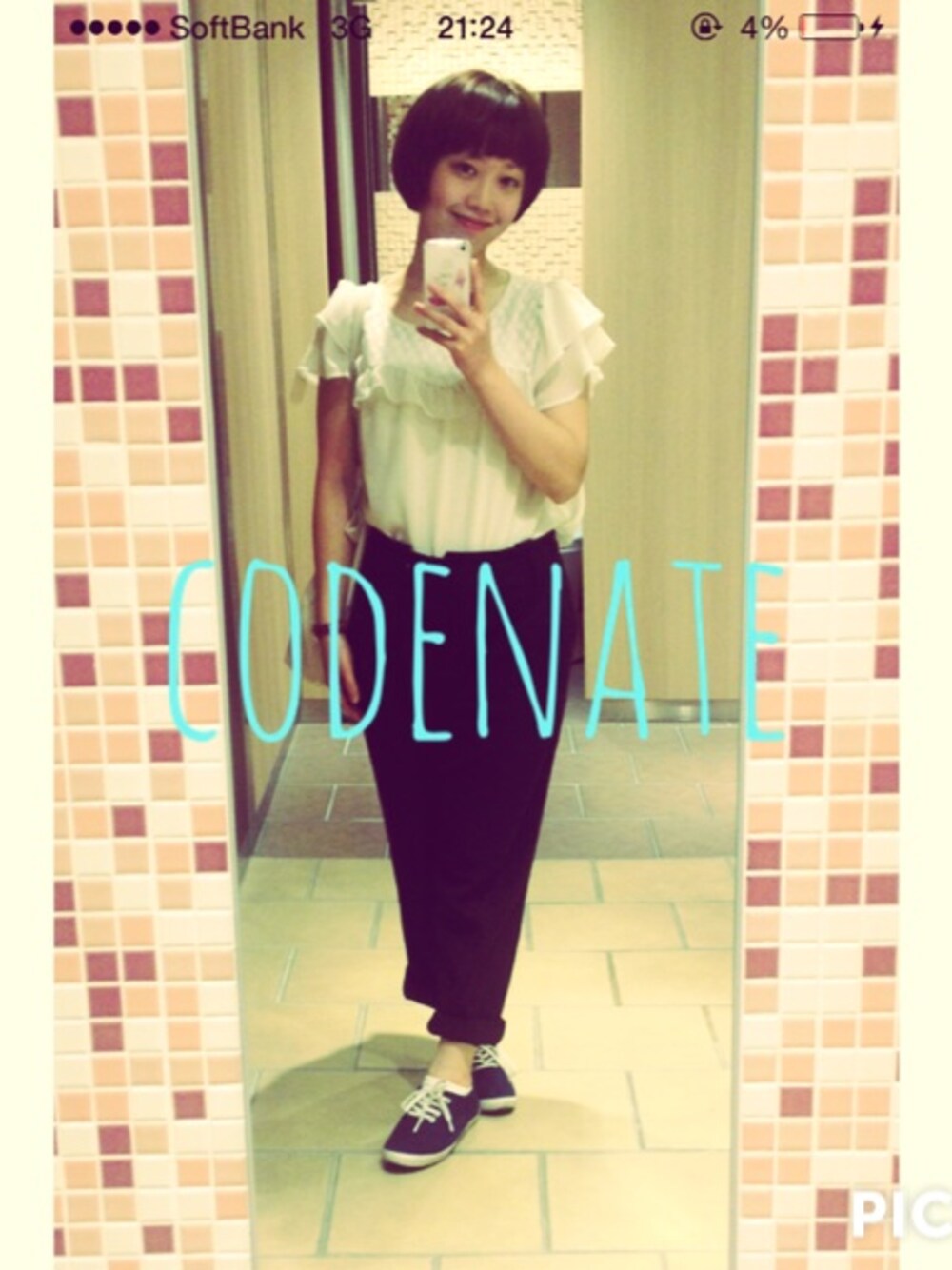 コーデをシックにまとめた分 靴でカジュアルに決めました。 靴はguで安くて可愛くて満足! 髪も切って更に短い ショートボブになりました♪♪