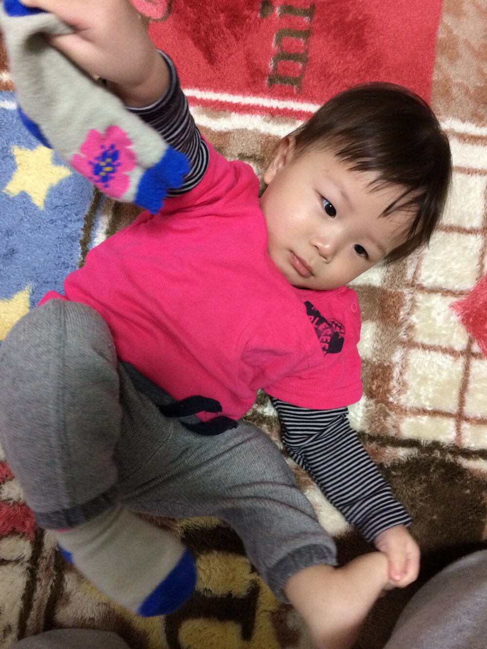 長袖ロンパス :ZARA ピンクTシャツ :アップルシールド パンツ :ZARA