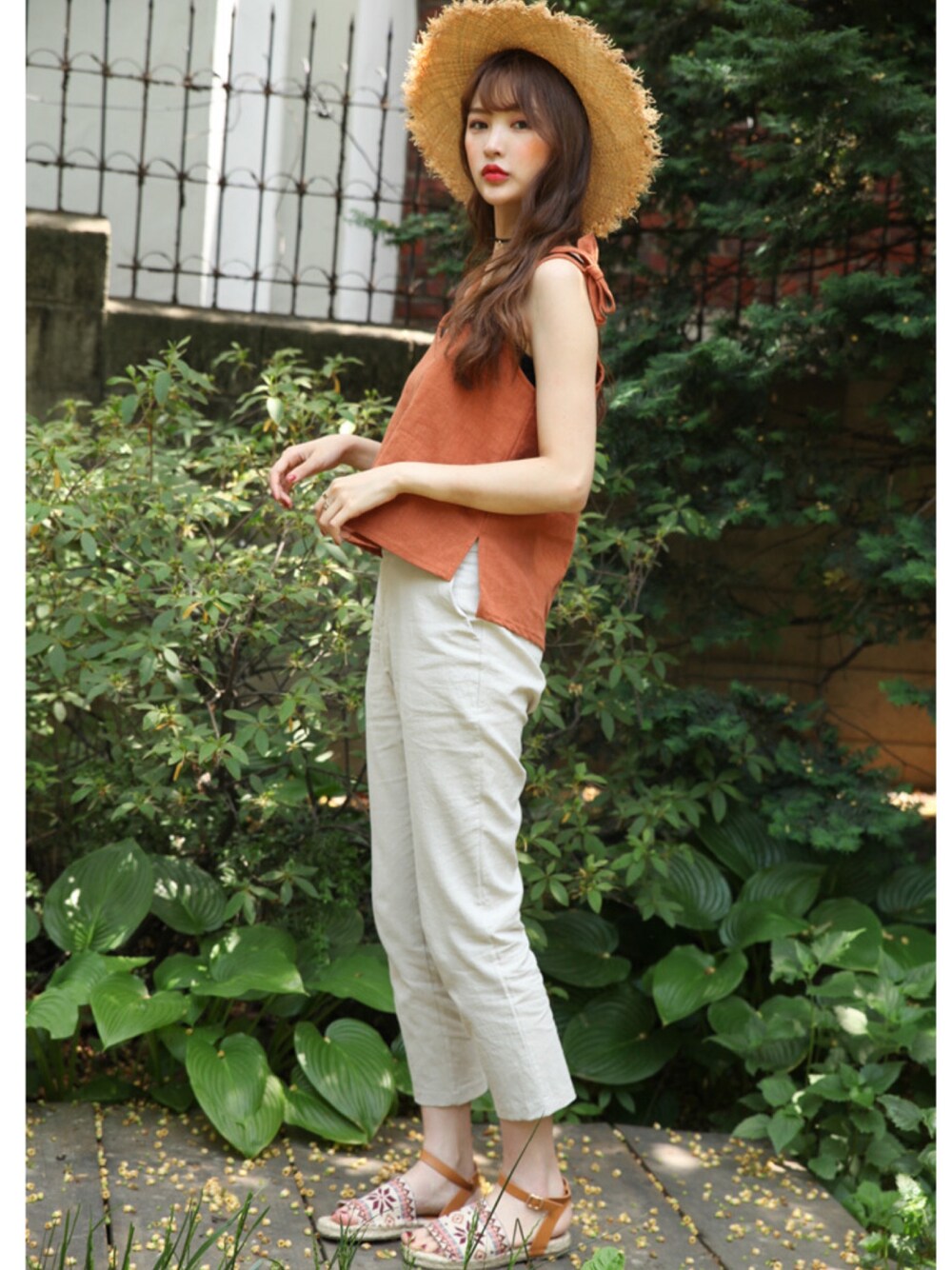 kormarchのベスト「Vネックリボンストラップポイントスリーブレス」を使ったコーディネート