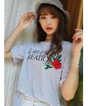 kormarchのTシャツ/カットソー「ローズレタリングボーダーTシャツ」を使ったコーディネート